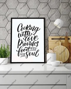 تابلو آشپزخانه cooking with love provides foot soul